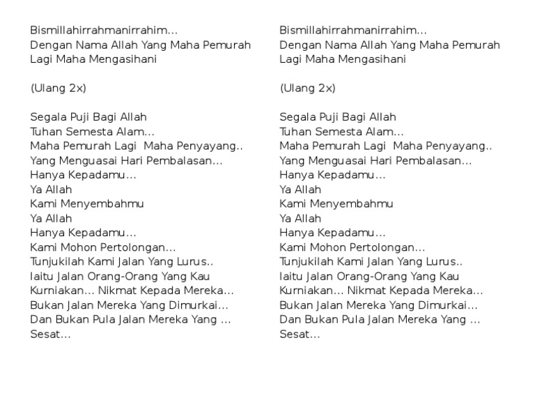 Dan segala bangsa sgala ciptaan. Maha pemurah lagi maha penyayang yang menguasai hari pembalasan. Saat subuh saya biasa berdoa berdoa kepada Allah Yang Maha Tinggi.